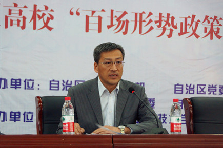 學(xué)院黨委副書記、紀(jì)委書記白托婭主持報告會。她指出,孫書記用生動地講述使我們對黨的歷史、黨的奮斗目標(biāo)、中國建設(shè)發(fā)展的現(xiàn)狀有了深入理解,堅定了對以習(xí)近平同志為核心的黨中央集中統(tǒng)一領(lǐng)導(dǎo)的信心與信念。特別是孫書記通過幾個引人深思的哲理故事,教育引導(dǎo)青年學(xué)生如何把握機遇,成長為擔(dān)當(dāng)民族復(fù)興大任的時代新人。希望同學(xué)們在聆聽報告之后,深入思考,進一步領(lǐng)會報告的深刻思想,特別是對我們青年人提出的一些具體要求,思考我們從現(xiàn)在開始要怎么做。尤其在座的都是學(xué)生骨干,大家身上的責(zé)任與擔(dān)當(dāng)更重,要在同學(xué)中發(fā)揮示范表率作用,結(jié)合自身實際,心懷理想,做好當(dāng)下,抓住機遇,鍛煉自己,學(xué)好專業(yè)知識,做品德高尚有理想的人,做合格的社會主義接班人和建設(shè)者。