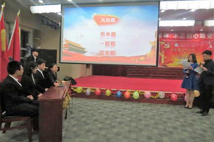 本次競(jìng)賽分為必答題、搶答題、風(fēng)險(xiǎn)題三個(gè)環(huán)節(jié),題庫(kù)準(zhǔn)備了1000道考題,內(nèi)容涵蓋了十九大、新黨章黨規(guī)黨紀(jì)、習(xí)近平系列重要講話等相關(guān)知識(shí)點(diǎn)。各代表隊(duì)參賽選手使出渾身解數(shù),冷靜作答,密切配合,氣氛活躍而緊張,上演了一場(chǎng)精彩紛呈的黨建文化盛宴。競(jìng)賽現(xiàn)場(chǎng)精彩紛呈,高潮迭起,選手們既有毫不猶豫的快速回答,也有充分商討后的沉著應(yīng)答,展現(xiàn)了他們豐富的知識(shí)積累和敏捷的思辨能力。在工作人員統(tǒng)計(jì)分?jǐn)?shù)的間隙,主持人與現(xiàn)場(chǎng)學(xué)生進(jìn)行了互動(dòng),把難度較大的風(fēng)險(xiǎn)題拋給大家搶答,有7位同學(xué)獲得了現(xiàn)場(chǎng)搶答獎(jiǎng)勵(lì)——《習(xí)近平系列重要講話讀本》。