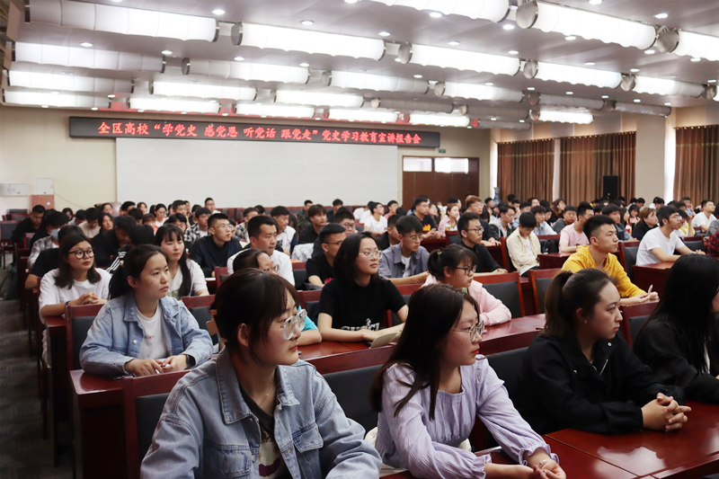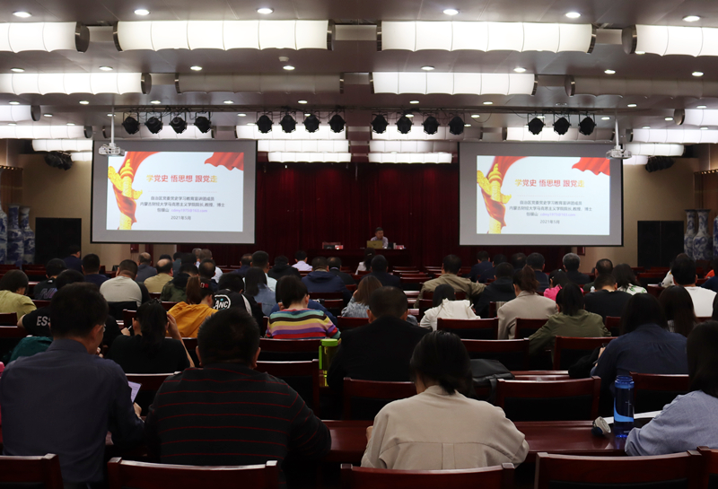 按照自治區(qū)黨委宣傳部、自治區(qū)黨委黨史學(xué)習(xí)教育領(lǐng)導(dǎo)小組的統(tǒng)一部署,5月27日下午,學(xué)院黨委在A453多功能廳舉行了兩場(chǎng)“學(xué)黨史 悟思想 跟黨走”全區(qū)高校黨史學(xué)習(xí)教育巡回宣講報(bào)告會(huì)。由自治區(qū)黨史教育宣講團(tuán)成員、內(nèi)蒙古財(cái)經(jīng)大學(xué)馬克思主義學(xué)院院長(zhǎng)包銀山教授主講。學(xué)院黨委宣傳部部長(zhǎng)高飛和副部長(zhǎng)郭鵬飛分別主持宣講報(bào)告會(huì)。學(xué)院領(lǐng)導(dǎo)班子成員、全體教工黨員、思政教學(xué)部全體教師、學(xué)生黨員、學(xué)生預(yù)備黨員、入黨積極分子共計(jì)400余人在現(xiàn)場(chǎng)聆聽。