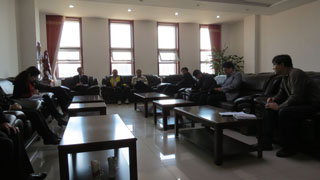 學(xué)院黨委副書記、紀(jì)委書記白托婭(右)向特邀黨建組織員白文生(左)同志頒發(fā)聘書 |