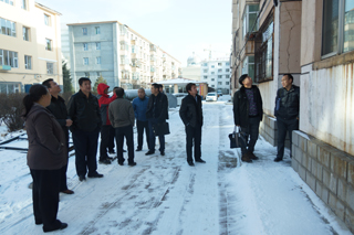 2015年12月14日,由呼市住房保障和房屋管理局老舊小區(qū)改造辦公室、玉泉區(qū)社區(qū)辦、博洋天成設(shè)計(jì)院房屋結(jié)構(gòu)設(shè)計(jì)公司相關(guān)負(fù)責(zé)人組成調(diào)研組來(lái)我院家屬區(qū)實(shí)地考察老舊小區(qū)改造工程項(xiàng)目進(jìn)展情況以及小區(qū)申請(qǐng)的增加改造項(xiàng)目。學(xué)院后勤保衛(wèi)處、家屬區(qū)管委會(huì)和小區(qū)改造施工方內(nèi)蒙古盈利宏建筑安裝有限責(zé)任公司主要負(fù)責(zé)人陪同考察。