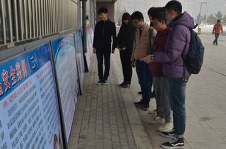 圖為學(xué)生在認(rèn)真學(xué)習(xí)安全知識(展板) |