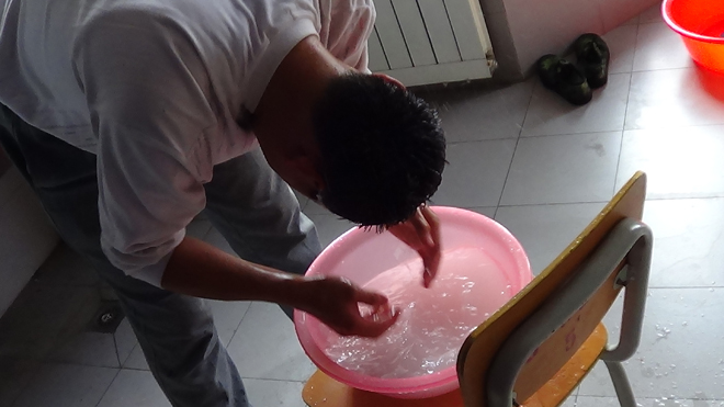 一等獎 作品名稱:一水多用 作品簡介:現(xiàn)在水資源嚴(yán)重短缺,我們應(yīng)該學(xué)會節(jié)約用水,最實用簡單的方法就是一水多用,這組照片是一個男生在宿舍的用水情況,他用一盆水洗頭,洗拖布打掃宿舍,最后才將一盆水倒掉。我們應(yīng)該向他學(xué)習(xí),學(xué)會一水多用。 土木1302班 楊蕓蕓 |